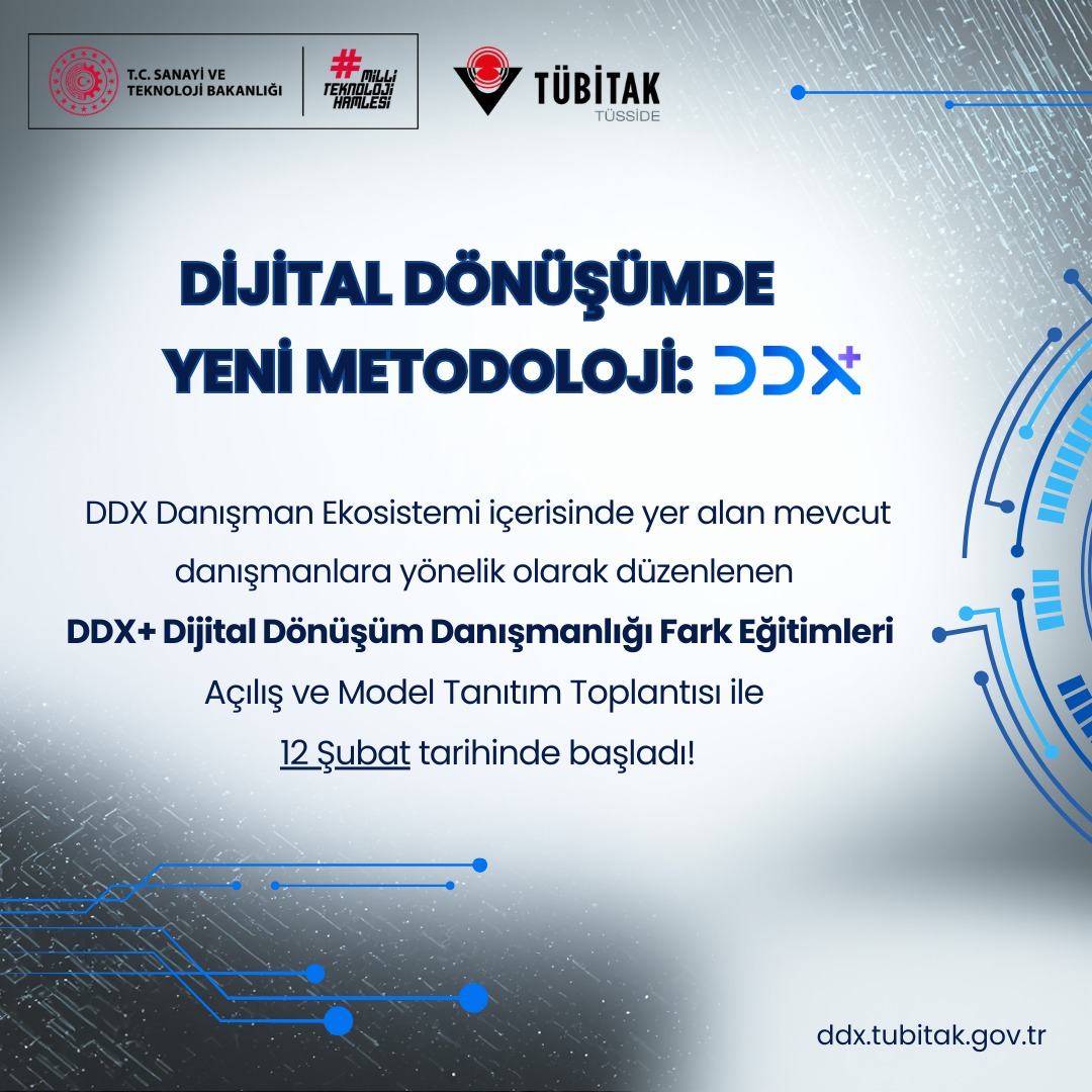 The DDX+ Digital Transformation Model, developed as a new, domestic and national model in cooperation with TÜBİTAK TÜSSİDE and the General Directorate of National Technology and Artificial Intelligence of the Ministry of Industry and Technology, aims to widely support the digital transformation of our country's manufacturing and service sectors.